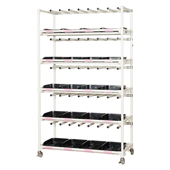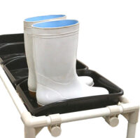 長靴・短靴ラック(トレイ直置きタイプ)は、食品工場で使う長靴・短靴の管理用品です。