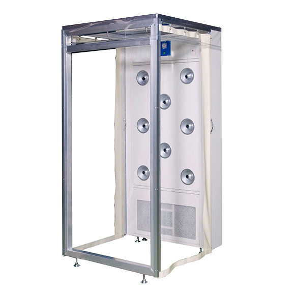 エアシャワーとはクリーンルームの出入り口に設置され、衣服等に当てることによって付着しているホコリを取り除く機器です。