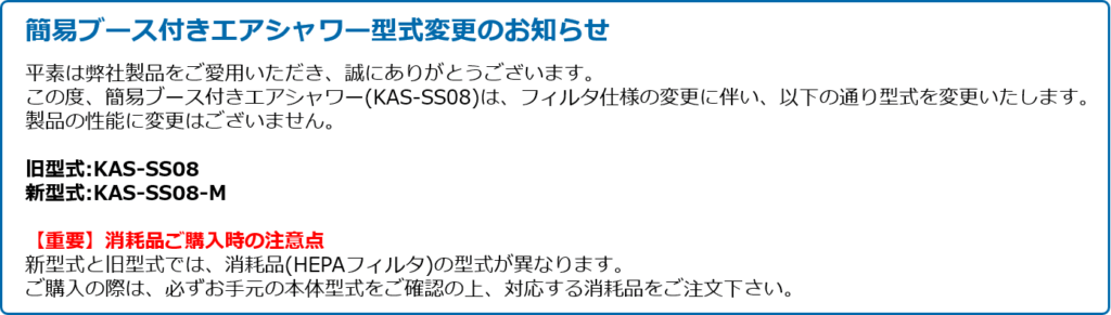| 交換用HEPAフィルタ | KAS-HP01 |